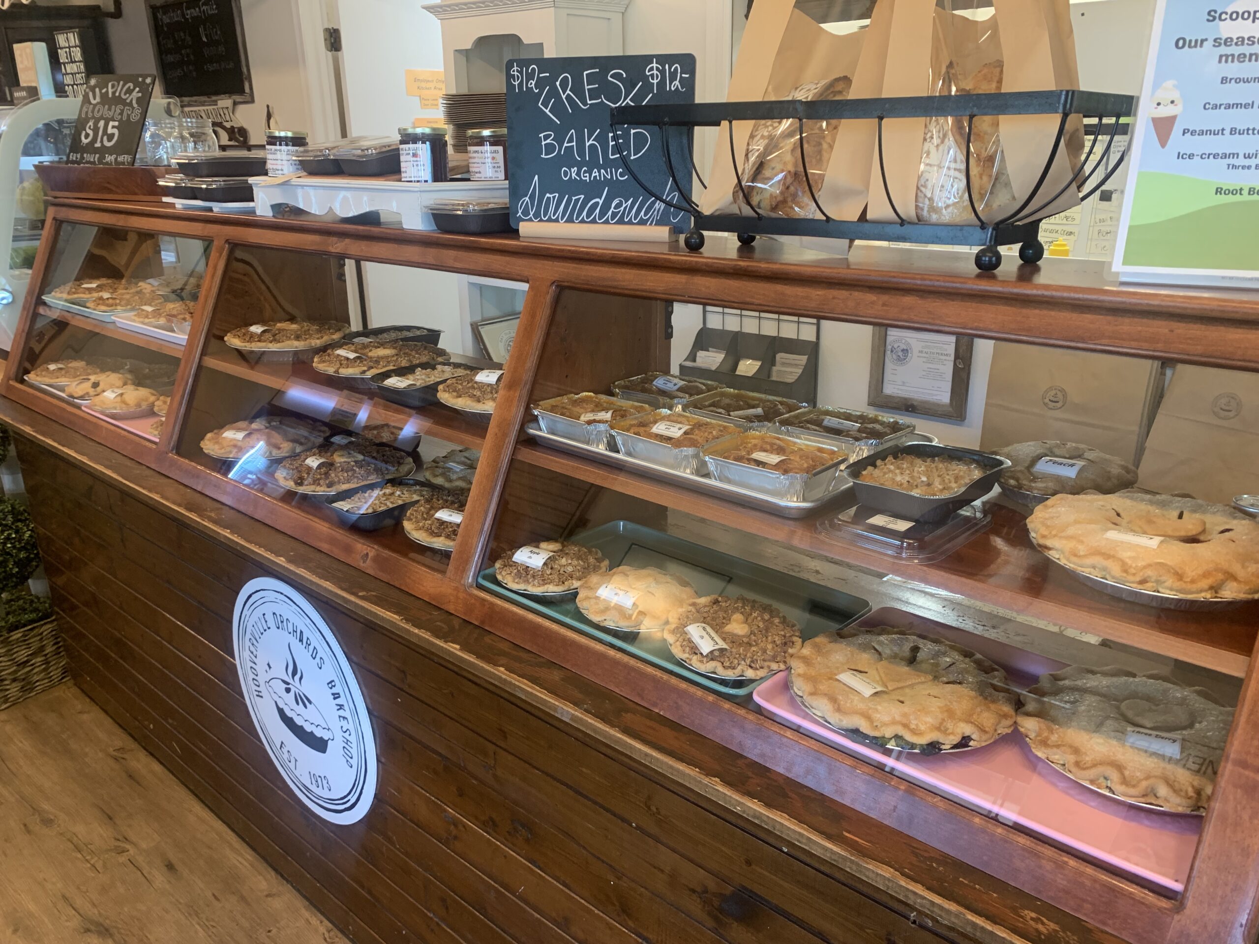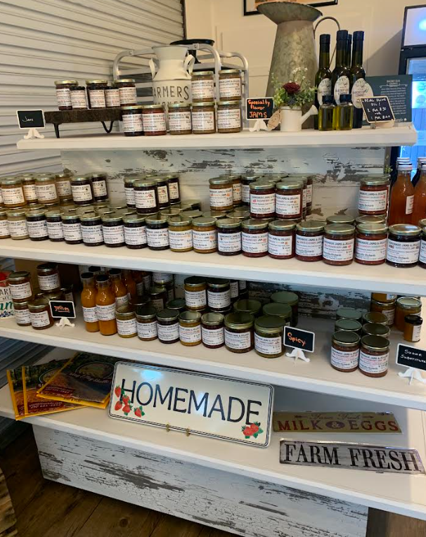 We keep the Bakeshop lobby stocked with seasonal fruit from the orchard, jams, jellies, pies, cookies, soourdough, and more! Check back often....we are making new additions to our products!
