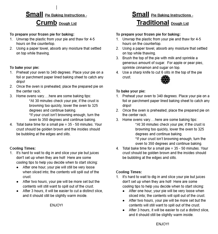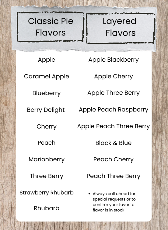 We offer fresh baked pies, cookies, brownies, cobblers, and streusels. Take home one of our frozen take-and-bake pies and enjoy the smell of a freshly baked pie from your own oven! Need pies for Thanksgiving, Christmas, or any special occasion? Give us a call! (530) 622-2155.